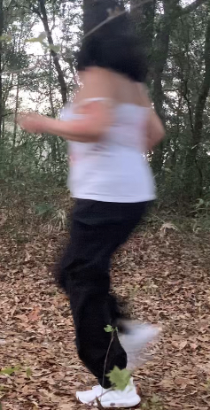 I began to add the sound effects that we created on my voice memo app and airdrop them to my computer and add them to the places they needed to be added to. We thought that by using these sound effects such as footsteps, birds, and leaves rustling, it would create a more realistic feel, adding to the tone of eeriness. While I was adding the sound effects, I noticed that we could not use a lot of the sounds that originally came with the videos we took, either because they were not loud enough or because there were tons of anthropogenic sounds. However, most of these were easy fixes. The only thing that I was not able to fix was the clip with the screaming. Originally, we filmed a shot of the opening scene with the screaming included. When I listened to it, the screaming was not as loud and clear as we wanted it to be due to other factors such as the wind and children in the distance. Because of this, Isabella had to record herself screaming so we could get clearer audio. Luckily, the audio she recorded was perfect and I muted the original clip and replaced the old audio with the new one. Another thing I decided to do was color correct the shots. Originally, we were not planning on doing this but since we had shot on different days and at different times the continuity was negatively affected. To fix this, we lowered the saturation and gave all the clips a blue tone to create a gloomy environment.